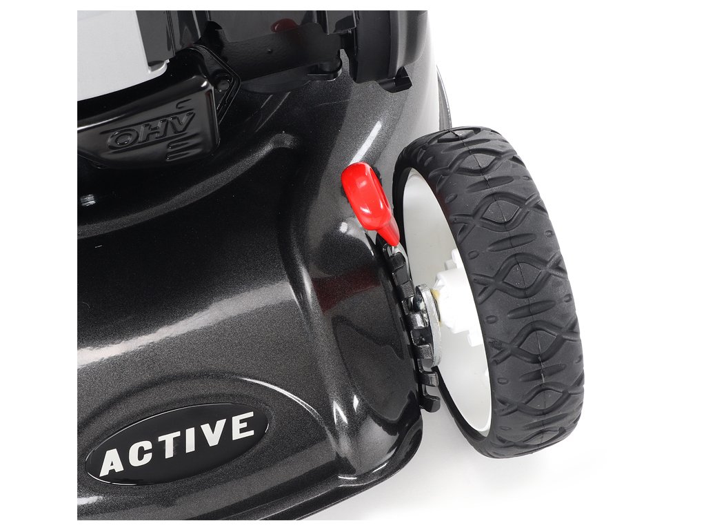 Sekačka ACTIVE 4850 SB je určena na středně velké travnaté plochy. Její neskutečná výbava, design a kvalitní zpracování z ní dělají doslova perlu v této střední třídě travních sekaček s pojezdem. Sekačka ACTIVE vyniká speciálním pevným a masivním ocelovým šasim.