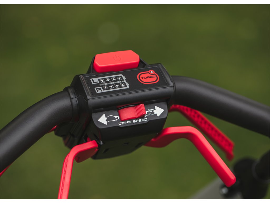 - Funkce Boost upravuje výkon motoru podle výšky nebo hustoty trávy