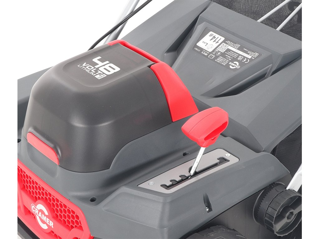 Cramer baterie 48V je vyměnitelná v kterémkoli z 48V platformě, rozsahu od foukačů, nůžek na živý plot, pil, vyžínačů a dokonce i provzdušňovače trávy.