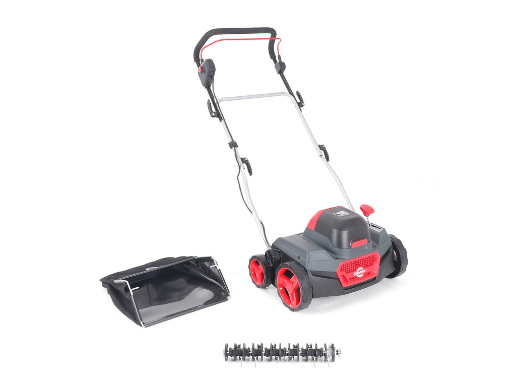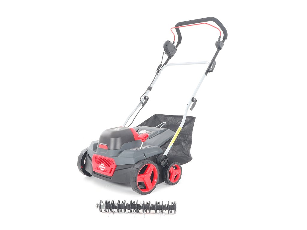 S pracovní šířkou 36 cm je stroj vybaven jak kazetou s vertikutačními noži, tak kazetou s pružnými prsty pro ošetření vašeho trávníku po celý rok. Centrální nastavení výšky umožňuje zvedání nebo spouštění pracovní hloubky jednou rukou v závislosti na podmínkách.