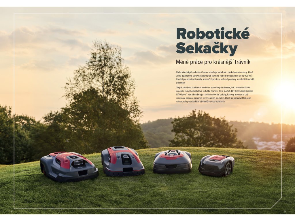 AiConic 1, 2 a 3 jsou plně automatizované inteligentní robotické sekačky určené pro menší komerční nebo spotřebitelské plochy do 1 000, 2 000 a 3 000 m2. Použití technologie Cramer RTK FusionTRADE, která kombinuje určování polohy pomocí satelitu, radaru, kamery a dalších vestavěných senzorů. Sekačka pracuje ve virtuální ploše, která lze nastavit a řídit tak, aby vyhovovala požadavkům uživatele. AiConic má další výhodu v tom, že používá umělou inteligenci k detekci překážek a také využívá řadu senzorů, které vždy znají její přesnou polohu a optimalizují vzorec sečení tím nejefektivnějším způsobem.
