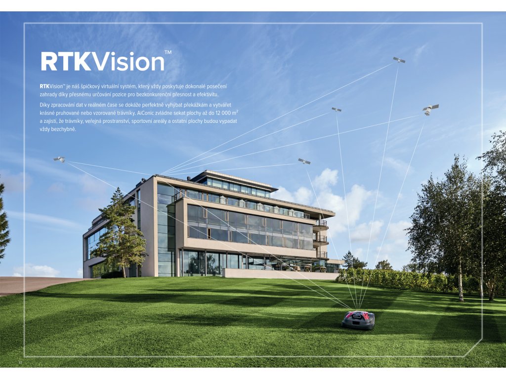 uživatele. AiConic má další výhodu v tom, že používá umělou inteligenci k detekci překážek a také využívá řadu senzorů, které vždy znají její přesnou polohu a optimalizují vzorec sečení tím nejefektivnějším způsobem.