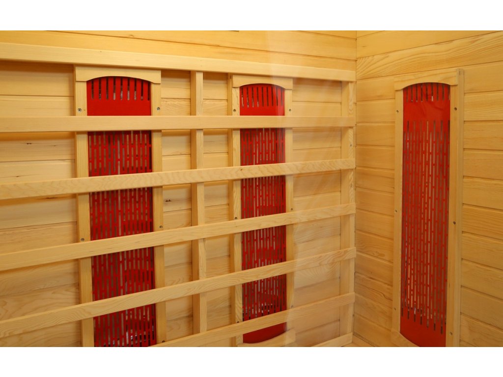 Nově je u všech infrasaun DeLuxe přidáno další topné těleso přímo pod nohy saunujících se osob. Přidáním dalšího karbonového topidla do podlahy se zvýšila účinnost infrasauny a komfort saunování.