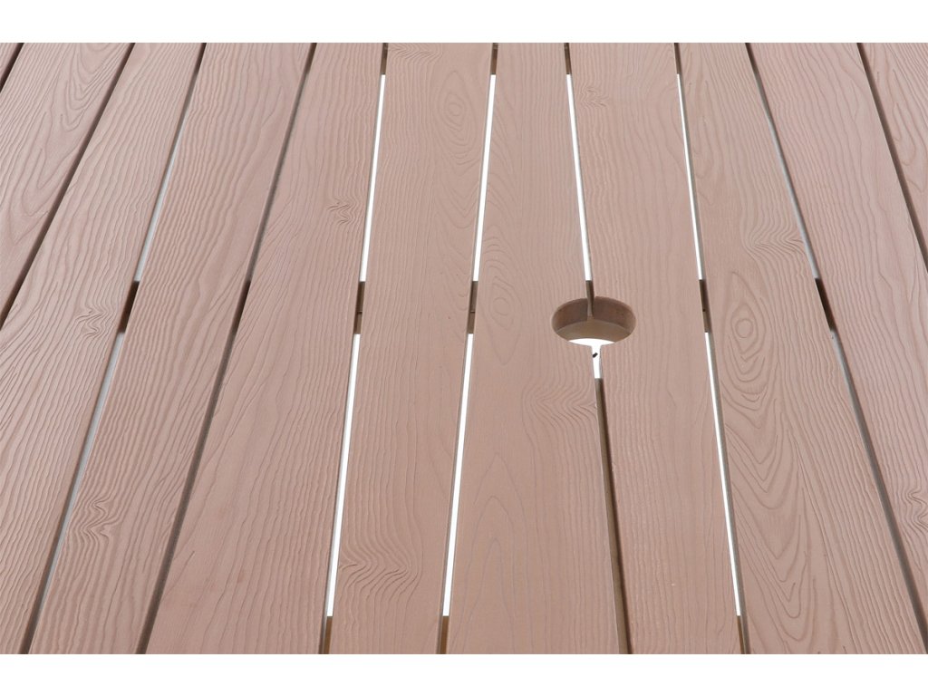 Značkový zahradní stůl s deskou POLYWOOD je díky zvolenému materiálu prakticky bezúdržbový. POLYWOOD je moderní materiál směsi plastu s dřevěnými pilinami vyznačující se stálostí a jednoduchou údržbou.