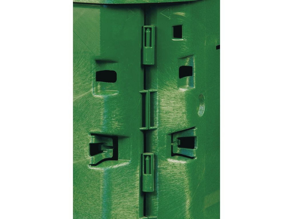 - Výklopné vrchní víko pro snadné ukládání odpadu, spodní výklopné víko pro snadný odběr kompostu.