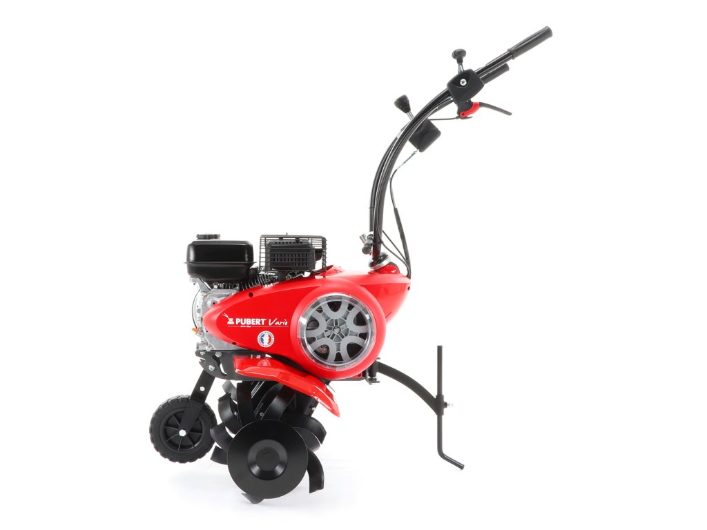 Kvalitní kultivátor PUBERT VARIO 55P C3 s dvourychlostní variabilní převodovkou - Profesionalní litinový motor s dvojitým filtrem v olejové lázni - 6 zpevněných kovaných nožů +boční disky - Sklopná a výškově nastavitelná řidítka s vyosením do boku - Přenos síly je řetězem, demontovatelný, mazaný tukem - Vodotěsná převodovka o hřídeli průměru 25mm - Převodová skříň: 2x rychlosti vpřed + 1x rychlost vzad. - variabilní rychlosti od 28-165 ot/min - Nová spojka napínání řemenu s dlouhou životností - Nastavitelná ojnice - Měkčené rukojeti - Ovládání rychlostí s variabilním nastavení otáček je centralizované na řidítkách - Přední sklopné transportní kolo - Instalace předního přislušenství - Motor PUBERT R210 BH využívá profi provedení vzduchového filtru v olejové lázni. Tento kultivátor lze použit v extrémním prašném prostředí aniž by došlo k poškození či zadření motoru. Tento zbůsob použití vzduchového filtru je z důvodu provozu výhodnější a ekonomičtější. - Profi prvek tohoto modelu kultivátoru je osazení stroje kvalitní celokovovou dvou rychlostní převodovkou s možností variabilního nastavení otáček kultivace od 28-165 ot/min (2x rychlost vpřed, 1x rychlost vzad) - Nastavitelná výška rukojeti s vyosením do boku - Kompletní velký KIT (šípová kola 400x8 včetně nábojů, kovová kola včetně nábojů, KIT závaží - kolové i přední protizávaží, jednostranný pluh, vyorávač brambor, hrobkovač, závaží a adaptery) - KIT pro orbu (šípová kola 400x8 včetně nábojů, KIT závaží - kolové i přední protizávaží, jednostranný pluh, přídavná ramena) - Hrobkovací KIT s kovovými koly - Vyorávač brambor - Sněhové řetězy - Pluh KIT - KIT závaží na kola 400x8 včetně protizávaží - Vozík Vares HV 220 L bržděný, nosnost 300kg + přípojný adaptér - Set 6-ti nožů - Kopinaté nože VARIO je dokonalým nástrojem k „ rozmělnění " půdy, odplevelení zeleninové zahrady, orání, vyorávání brambor, sečení a obracení trávy a v neposlední řadě i výborným pomocníkem v podobě malotraktoru s vozíkem. Jedná se o technologickou inovaci s novou variabilní celokovovou mechanickou převodovkou, navrženou a vyrobenou společností PUBERT z hliníkové slitiny a osazenou kovovými ozubenými koly, dva rychlostní stupně dopředu a jeden rychlostní stupeň dozadu. Budete mile překvapeni vysokým výkonem a nízkou cenou. VARIO je první kultivátor s proměnlivou rychlostí, který se snadno přizpůsobí různému druhu práce. Jeho pracovní hloubka může dosahovat až 32 cm. VARIO je jediný dokonalý pracovník pro přípravu půdy až do 2500 m2. Francouzský výrobce PUBERT je rodinná firma, která vznikla v roce 1840 ve francouzském městě Vendée, kde vyráběla pluhy. V roce 1960 začala společnost vyrábět doplňky pro zahradnictví. V roce 1976 vyrobila první kultivátor PUBERT. A v roce 1987 PUBERT vytvořil světový rekord v orání, když dokázal díky dobré kvalitě svých výrobků orat nonstop 24 hodin. Tento výkon je zapsán v Guinnessově knize rekordů. Od roku 2008 samotná výroba přesahuje 150.000 kusů kultivátorů a roční obrat 60 milionů eur. Francouzský výrobce značky PUBERT je celosvětovým lídrem ve výrobě kultivátorů. Made in FRANCE. Made in FRANCE.Rotace 3D - Kvalitní kultivátor PUBERT VARIO 55P C3 s dvourychlostní variabilní převodovkou:
