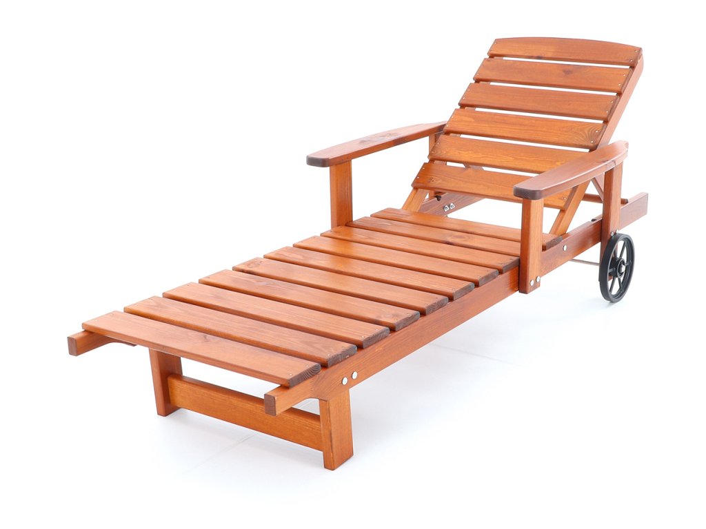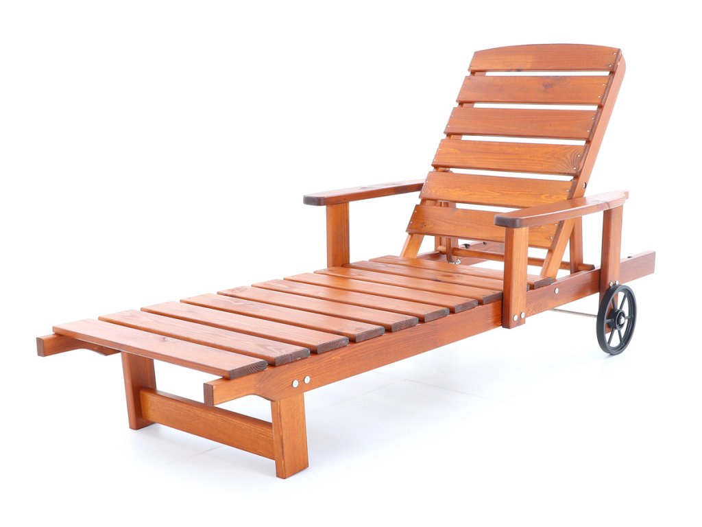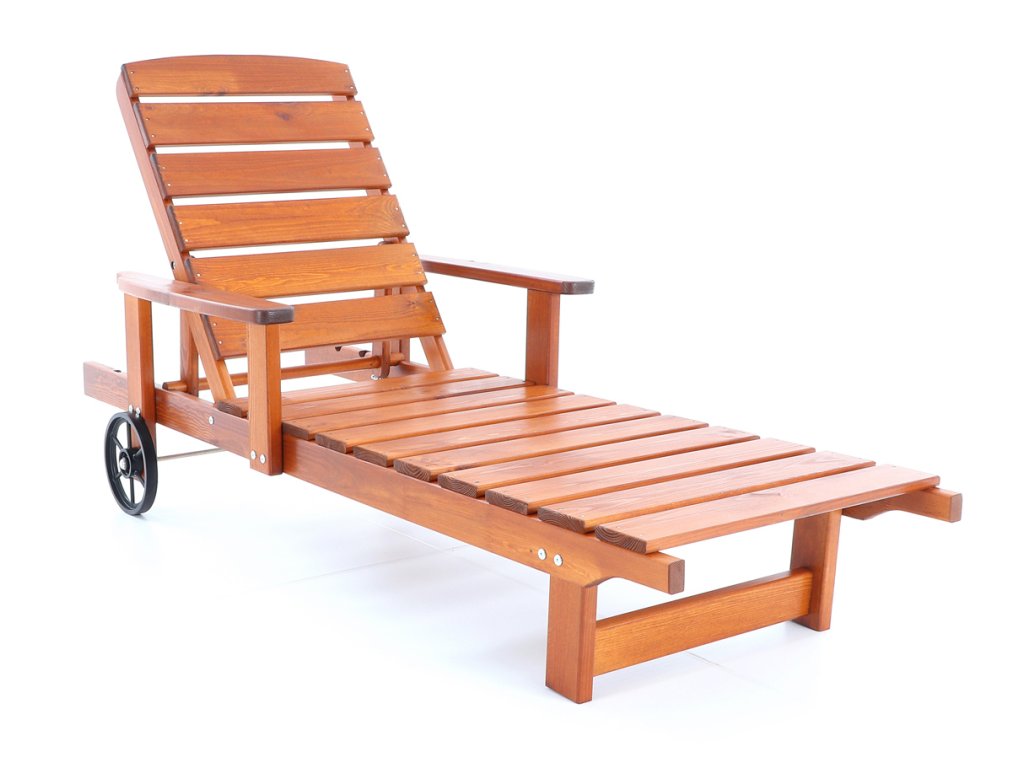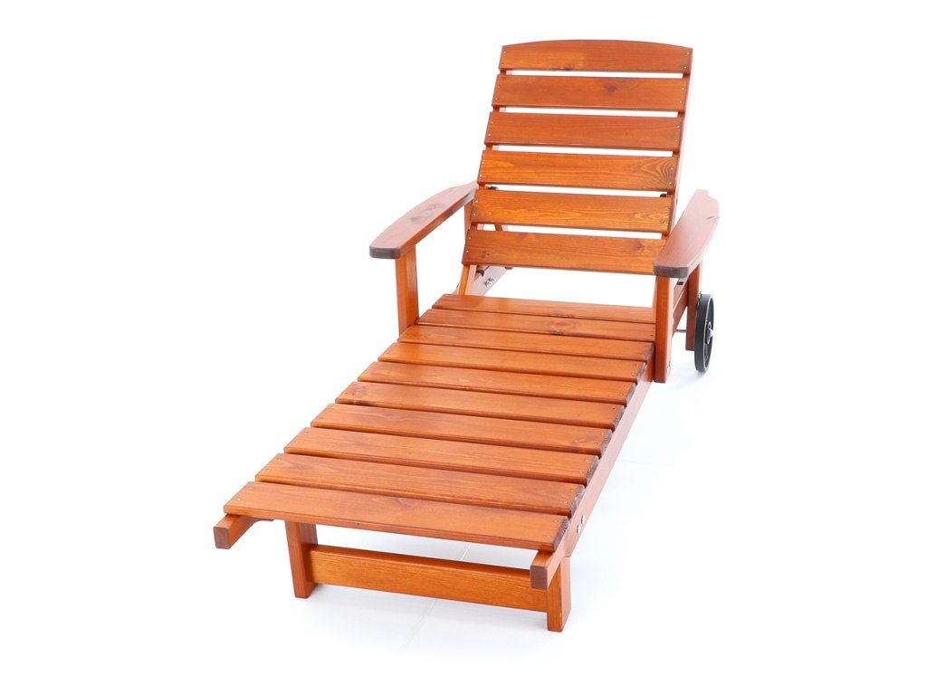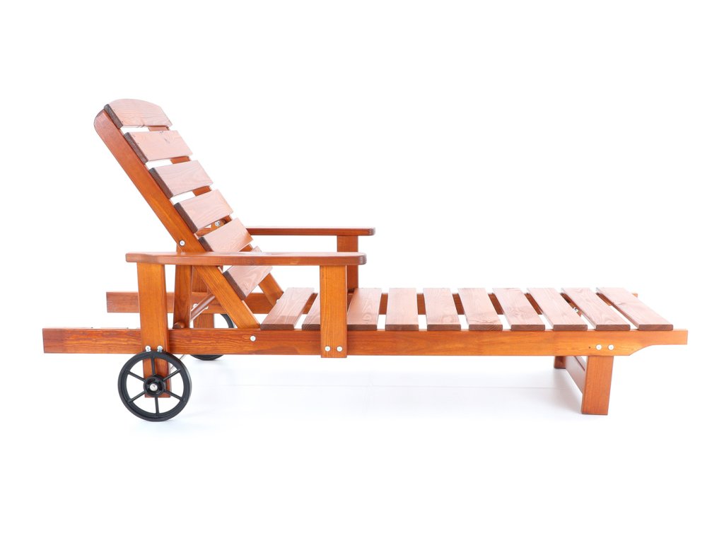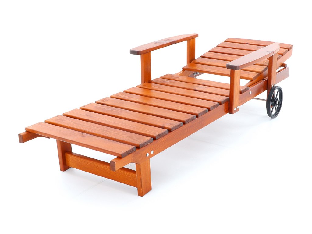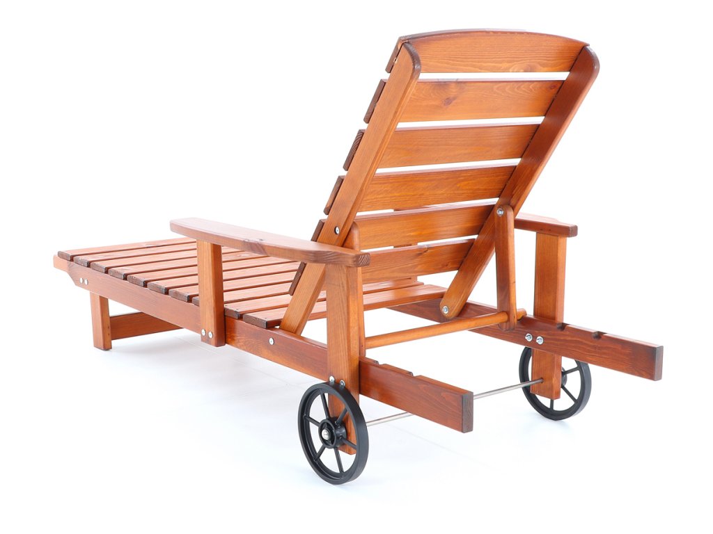 Polohovatelné dřevěné lehátko VeGA OSCAR, je vyrobeno z mořené severské borovice, povrchově ošetřena vodní lazurou. Určeno do exteriérů, interiérů a pergolových prostor. Lehátko je včetně pohodlných područek a přepravních koleček.