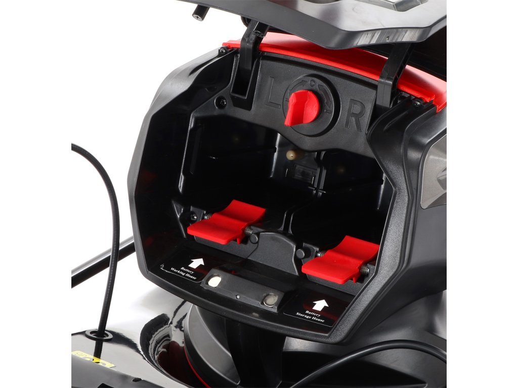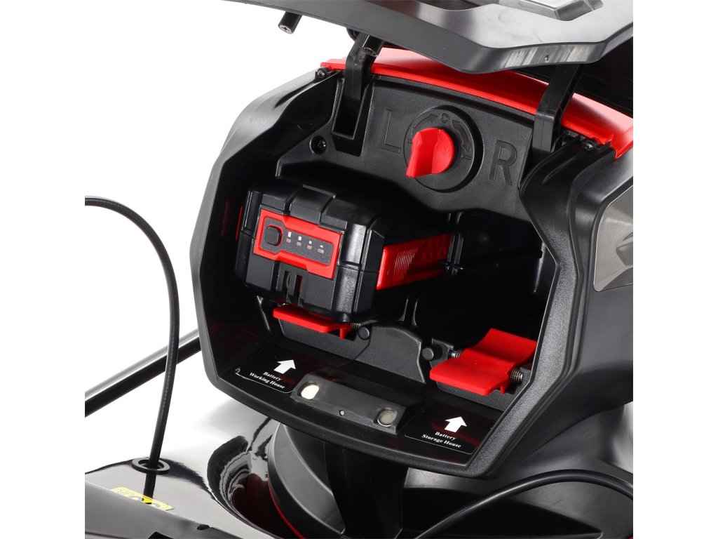 Tento model sekačky disponuje dvouslotovým uložením baterií. Jeden slot aktivní a druhý úložný pro možnost okamžité výměny baterie a pokračování v sečení.