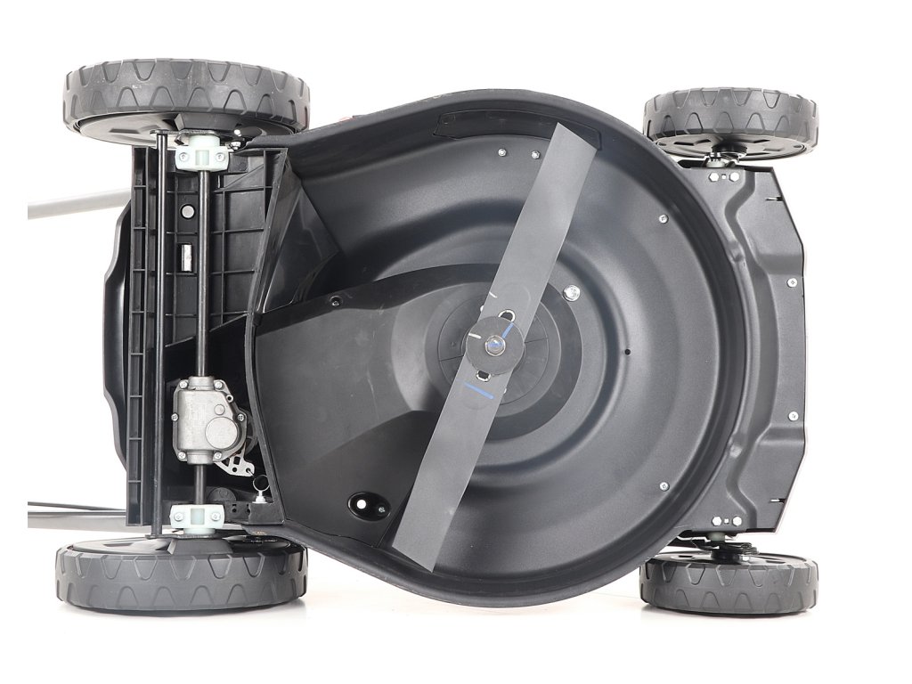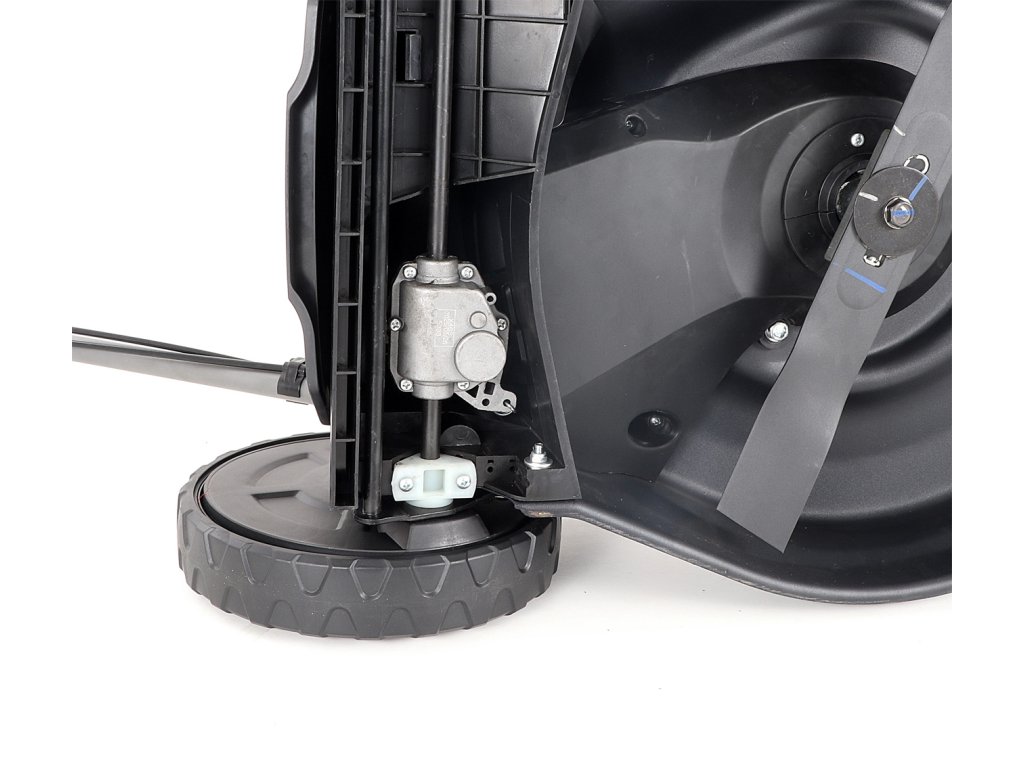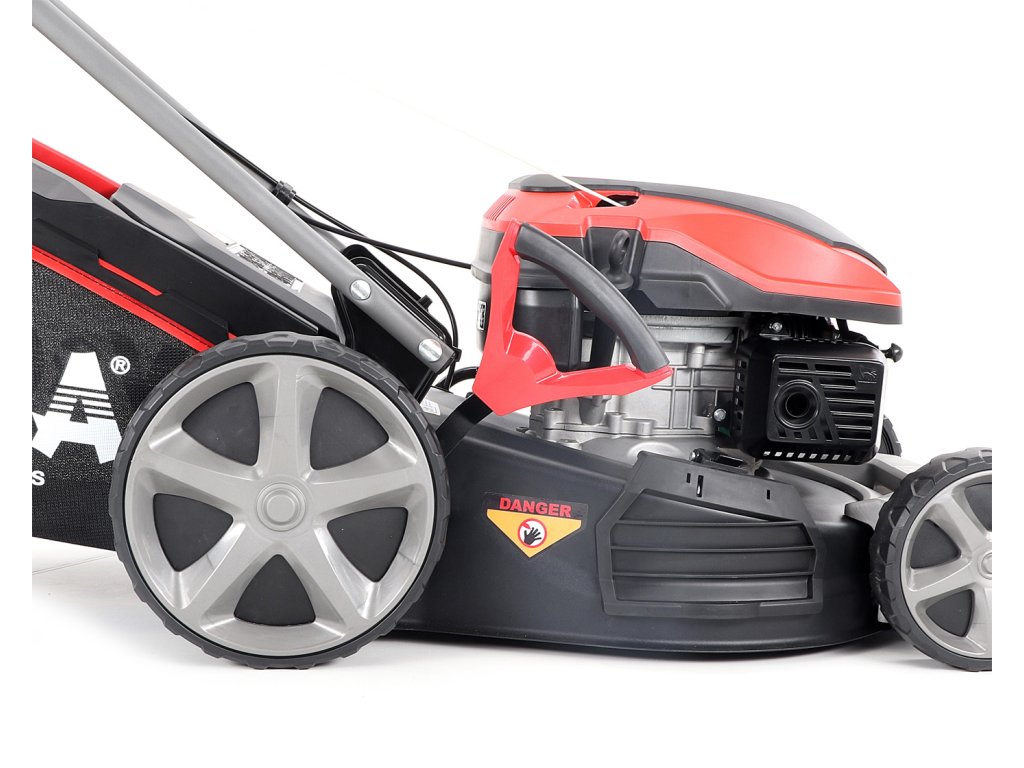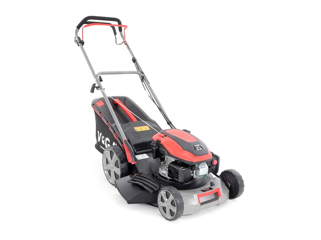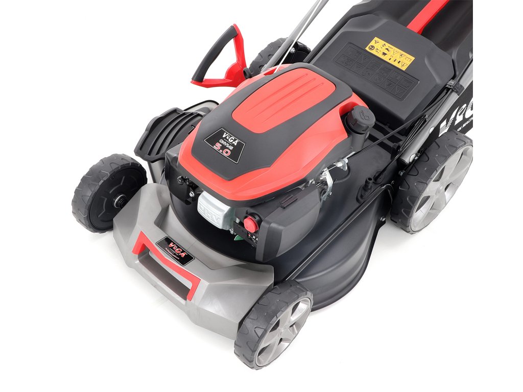 Velká zadní pojezdová kola i přední kola jsou uložena v oboustranných kuličkových ložiscích, centrální nastavení výšky sečení je u značky VeGA také samozřejmostí, jako ergonomické měkčené madlo.