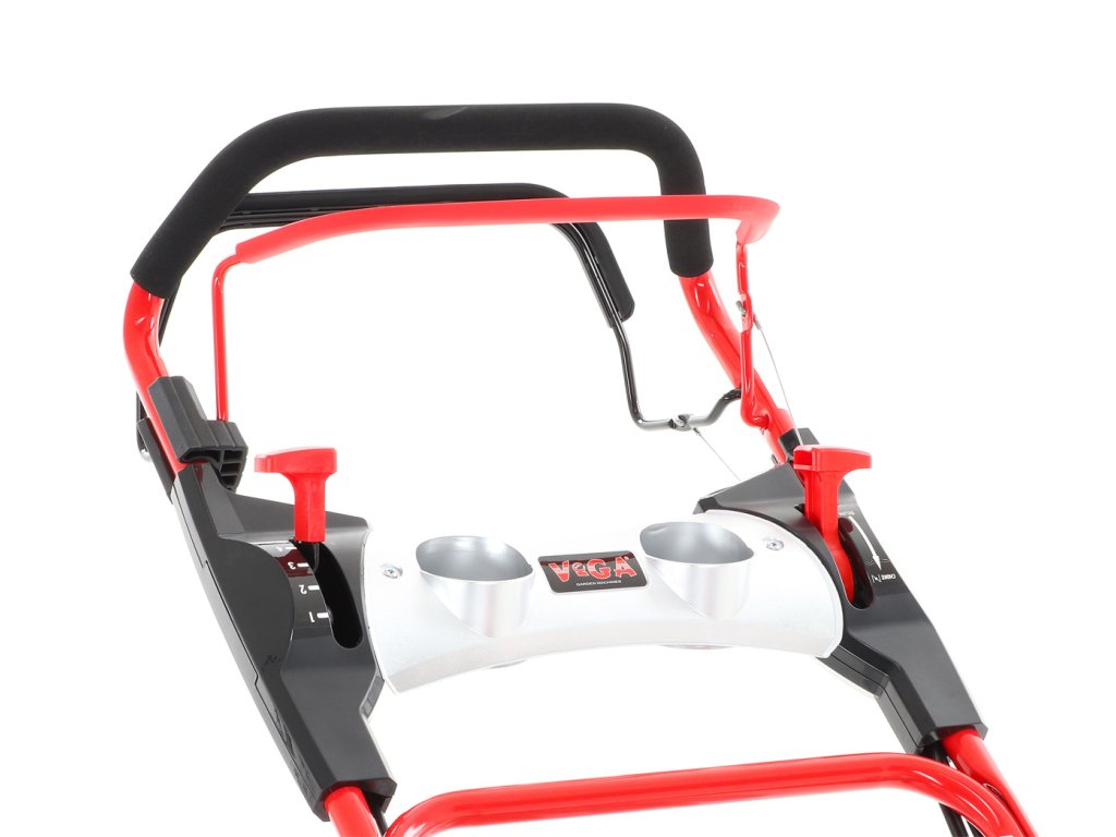 Rychlost motorové sekačky je možné regulovat v rozmezí 2,5 - 4,4 km/hod pomocí variátorové převodovky. Tento systém umožňuje nastavit 4x rychlosti pojezdu nezávisle na otáčkách motoru. Velká zadní pojezdová kola i přední kola jsou uložena v oboustraných kuličkových ložiscích, centrální nastavení výšky sečení je u značky VeGA samozřejmostí. Novinkou této série je použití pevnějšího materiálu z vysokojakostní oválné profilové oceli na konstrukci řidítek pro vyšší pevnost a torzní tuhost pro náročnou práci se strojem. Dvojité spojení madel pomocí dvou šroubů s křídlovou matkou jen podtrhuje masivnost provedení. Ovládací páky pojezdu a brzdy motoru jsou ergonomicky vytvarovány do pohodlných madel ve tvaru speciálních kastliků, které výrazně zvyšují komfort obsluhy při sečení a zároveň snižují únavu. Ovládací panel je navržen s praktickým úložným prostorem a ideální dostupností ovládacích prvků pro obsluhu.Na sekačky VeGA se poskytuje prodloužená záruka 3 roky.