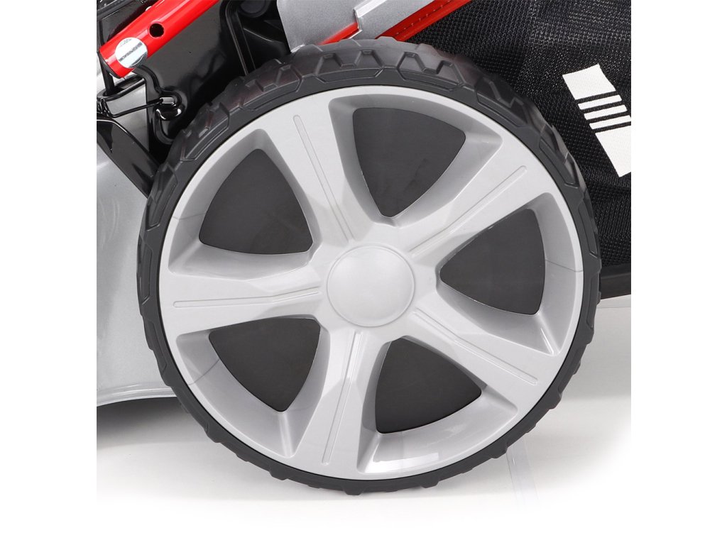 Velká zadní pojezdová kola i přední kola jsou uložena v oboustraných kuličkových ložiscích, centrální nastavení výšky sečení je u značky VeGA také samozřejmostí.
