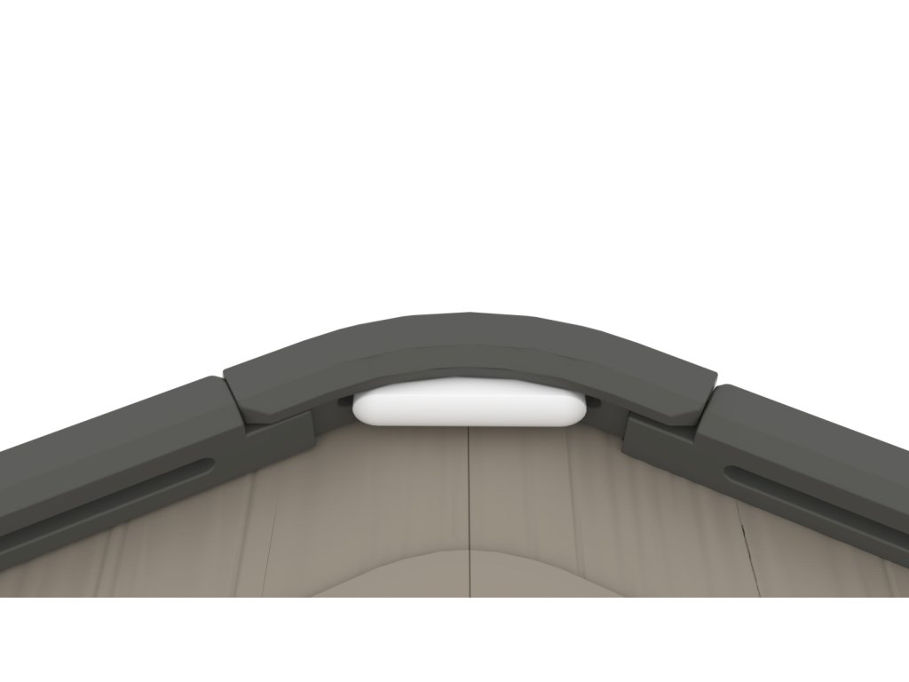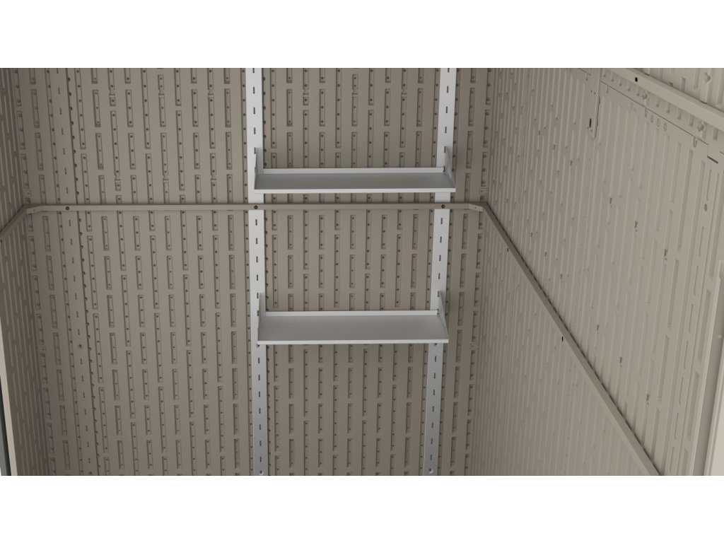 V základní výbavě nechybí dvě praktické police a pět plastových háčků, díky nimž budete mít veškeré vybavení vždy přehledně uspořádané. Pro ještě větší komfort je možné domek doplnit o LED světlo s pohybovým PIR senzorem, které se automaticky rozsvítí při vstupu.