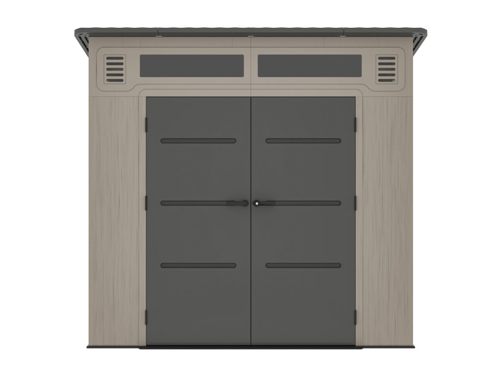 Tento moderní zahradní domek nabízí ideální kombinaci odolnosti, funkčnosti a elegantního vzhledu. Je vyroben z bezúdržbových dvouvrstvých HDPE panelů, které výborně odolávají povětrnostním vlivům a nevyžadují žádné speciální ošetřování. Tloušťka stěn 22 mm a zesílená střecha o tloušťce 36 mm zajišťují vysokou pevnost a dlouhou životnost celé konstrukce.