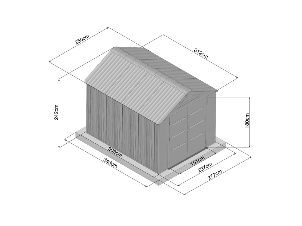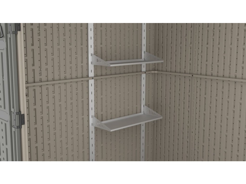 Moderní sedlová (apex) střecha přispívá k rychlému odvodu dešťové vody a zároveň zvyšuje nosnost celé konstrukce. V základní výbavě nechybí dvě praktické police a pět plastových háčků, díky nimž budete mít veškeré nářadí vždy přehledně uspořádané.