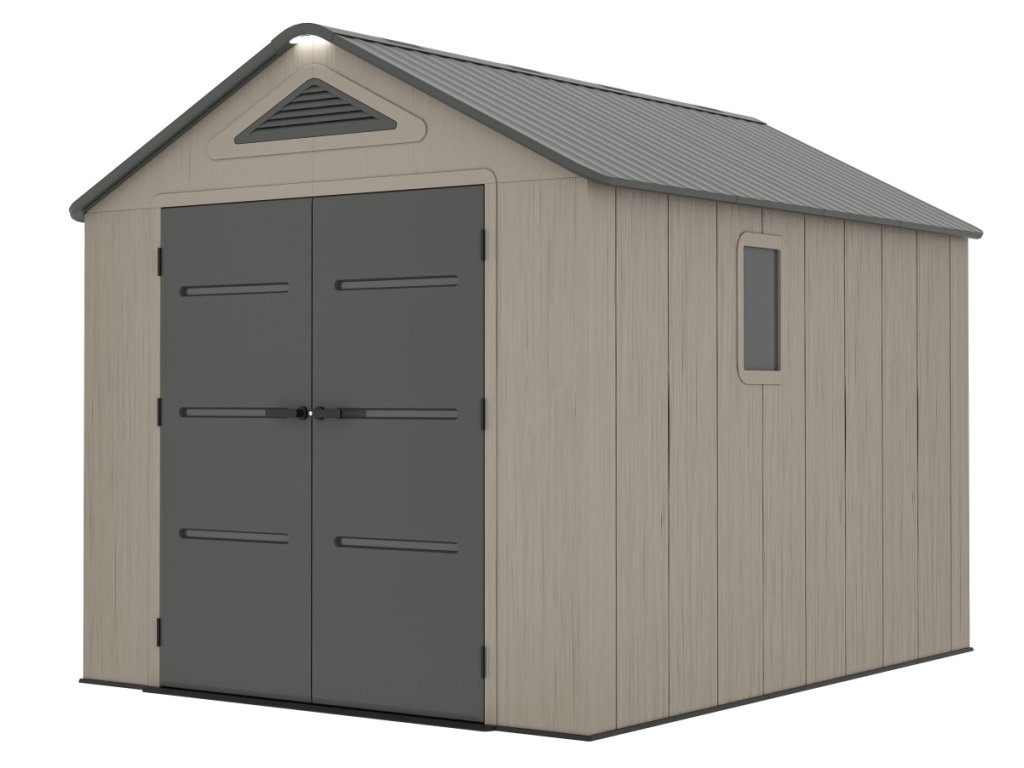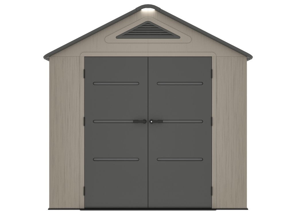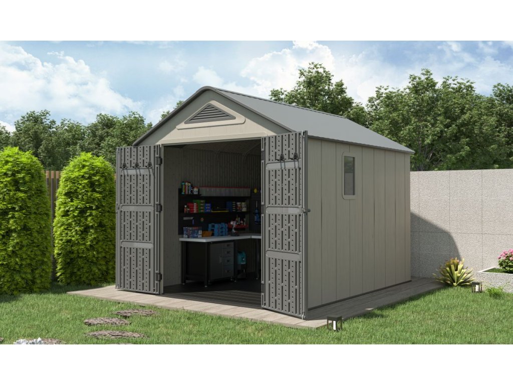 Součástí domku je také pevná plastová podlaha, která chrání před vlhkostí, blátem a umožňuje bezpečné uložení i těžších předmětů. O optimální klima uvnitř se stará ventilační systém na dvou stranách, který zajišťuje účinnou cirkulaci vzduchu.