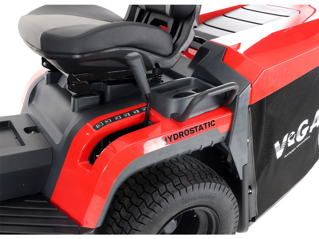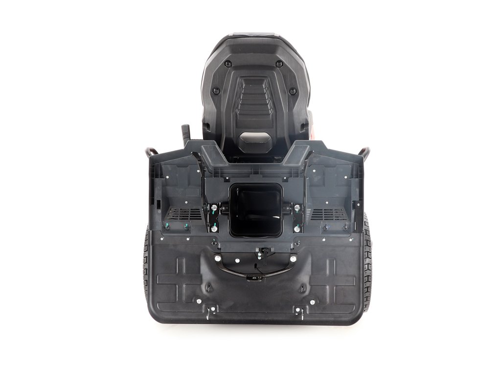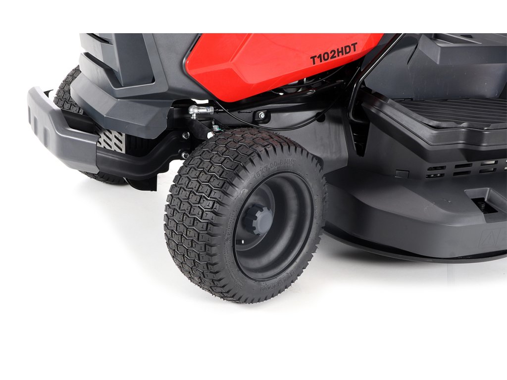 Hydrostatická převodovka zajišťuje plynulý a komfortní pohyb i v náročném terénu. Díky velkému sběrnému koši o objemu 280 litrů se nemusíte obávat častého vysypávání posekané trávy. Přední kola o velikosti 15“ x 7.00 “- 8 a zadní kola o velikosti 18“ x 10.00“- 9 spolu s dvojicí anti-skalpovacích kol zajišťují stabilitu a ochranu vašeho trávníku před poškozením.