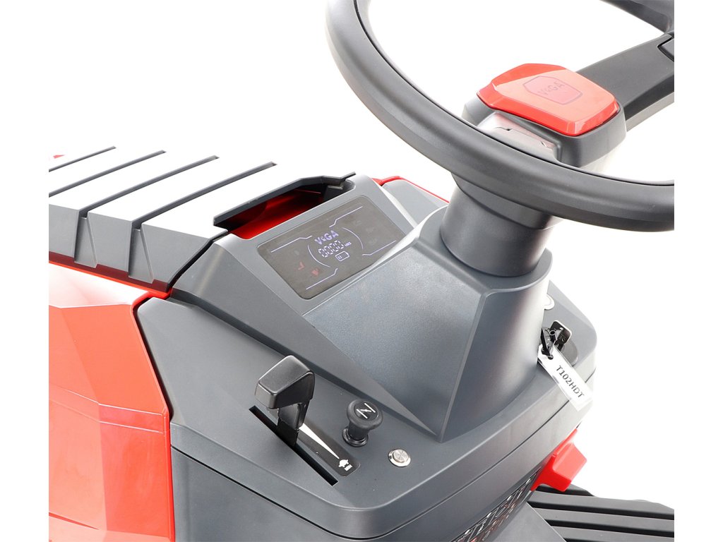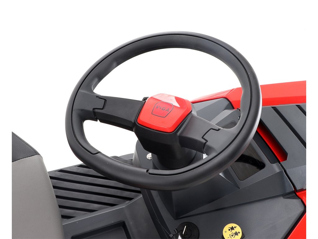 Mezi další praktické funkce patří LED světla pro práci za šera, digitální displej s informacemi o provozu a robustní hmotnost 255 kg, která zajišťuje vysokou stabilitu a odolnost stroje. Pohodlí zajišťuje ergonomická sedačka.