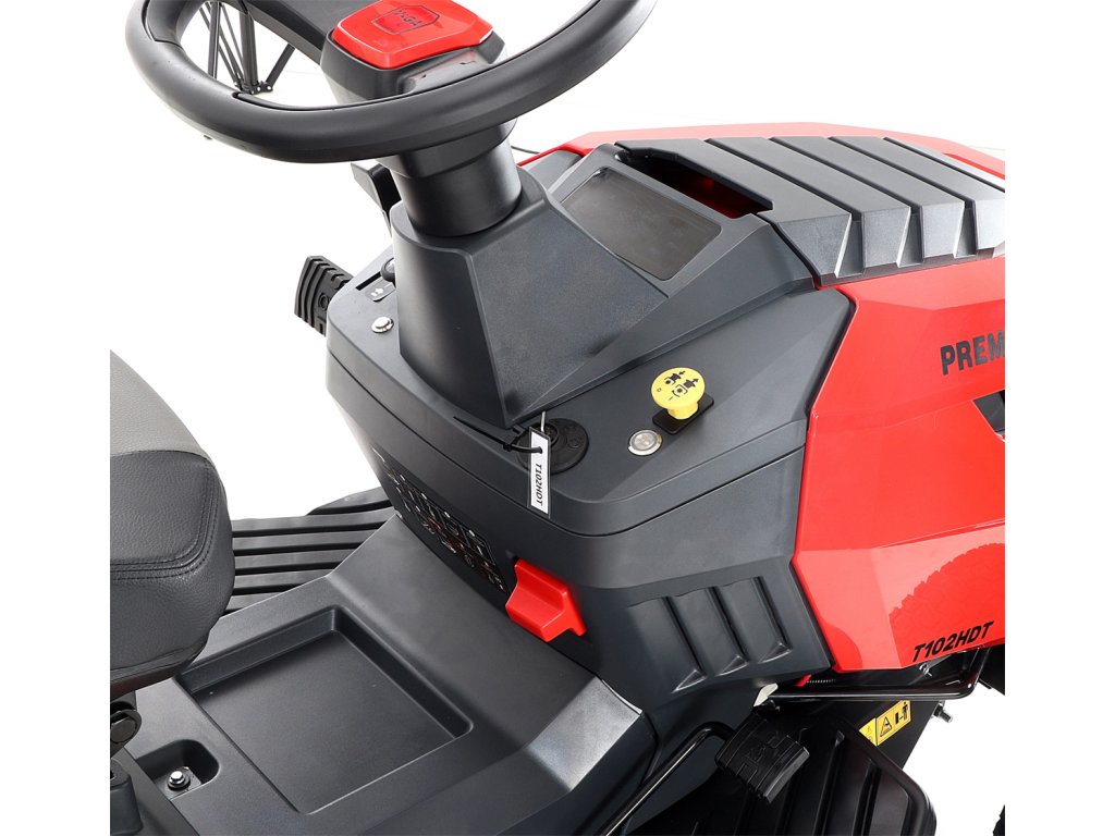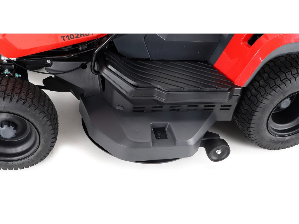 Hydrostatická převodovka zajišťuje plynulý a komfortní pohyb i v náročném terénu. Díky velkému sběrnému koši o objemu 280 litrů se nemusíte obávat častého vysypávání posekané trávy. Přední kola o velikosti 15“ x 7.00 “- 8 a zadní kola o velikosti 18“ x 10.00“- 9 spolu s dvojicí anti-skalpovacích kol zajišťují stabilitu a ochranu vašeho trávníku před poškozením.