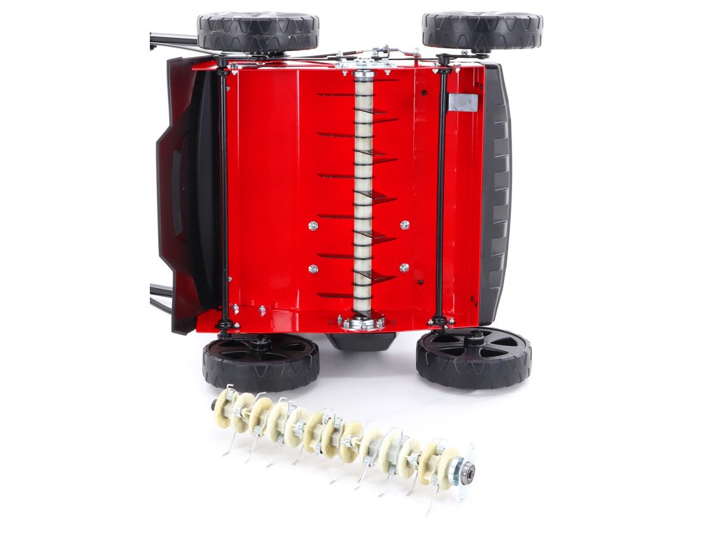 Systém 3 v 1 spočívá ve dvou výměnných válcích v kombinaci se sběrným košem. 1. pracovní válec je osazen 17-ti dvojitými noži, 2. válec 16-ti pružnými drátky.
