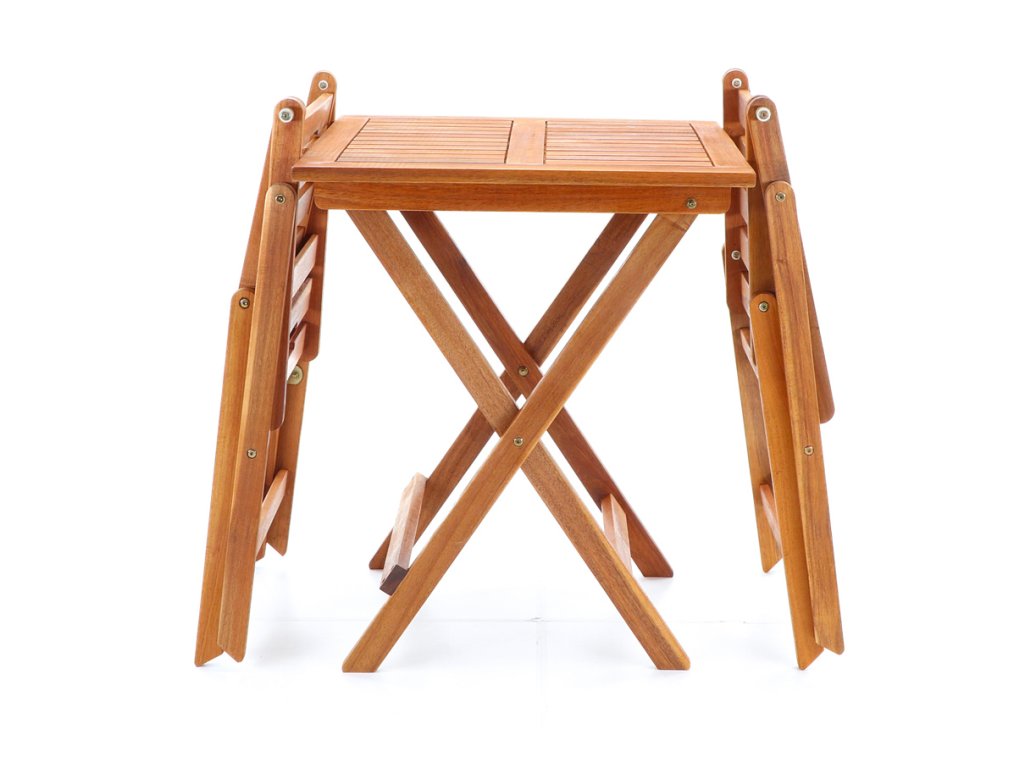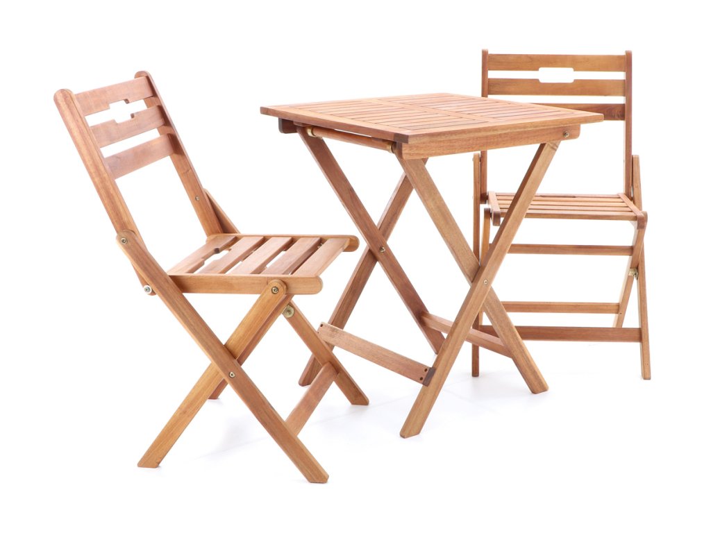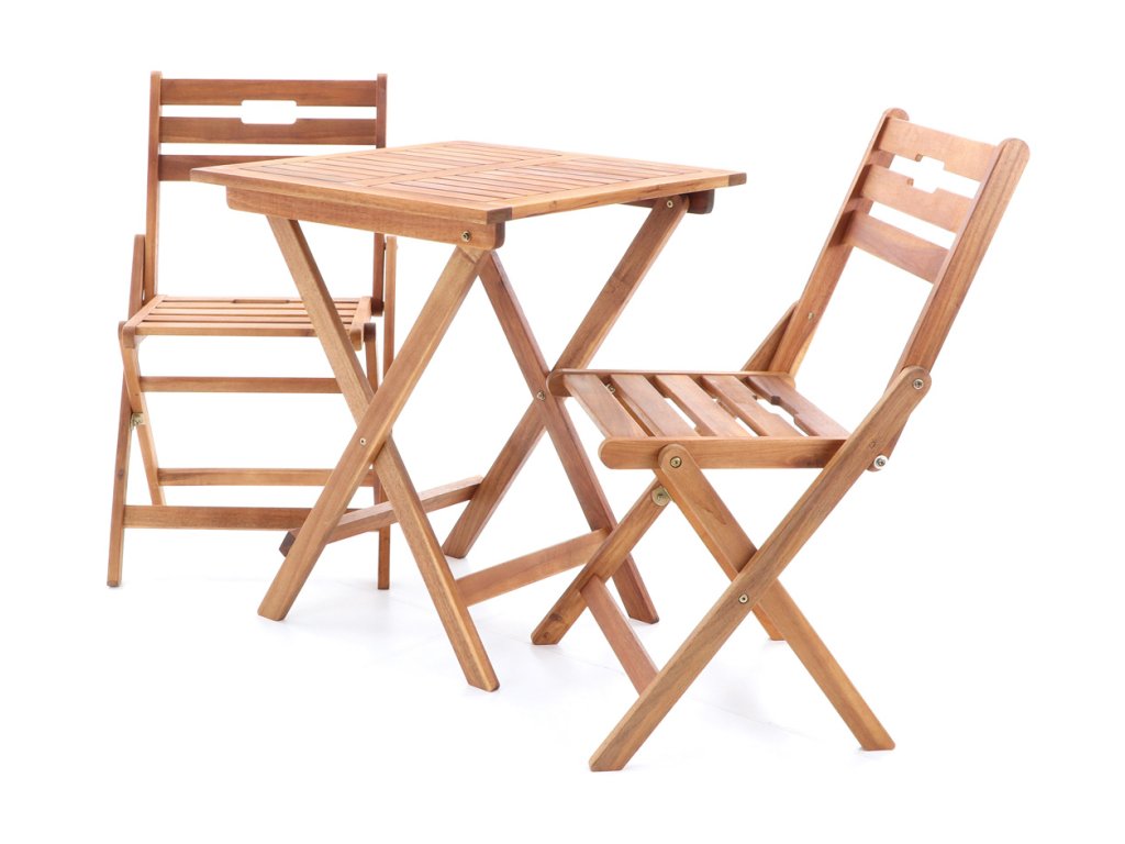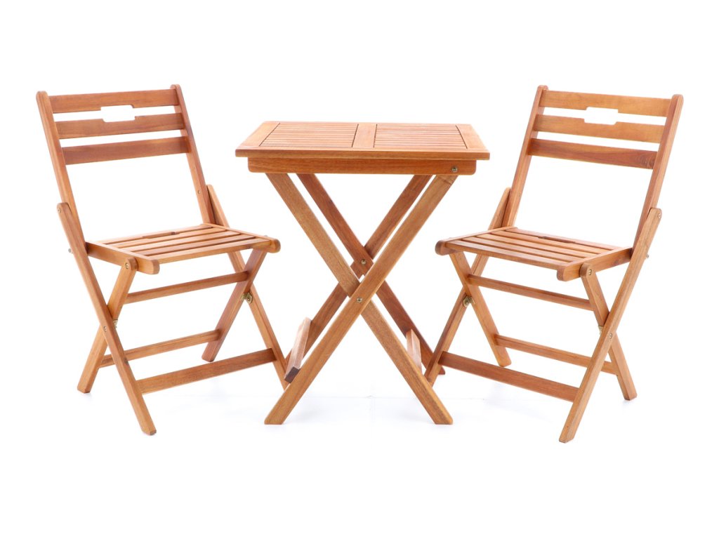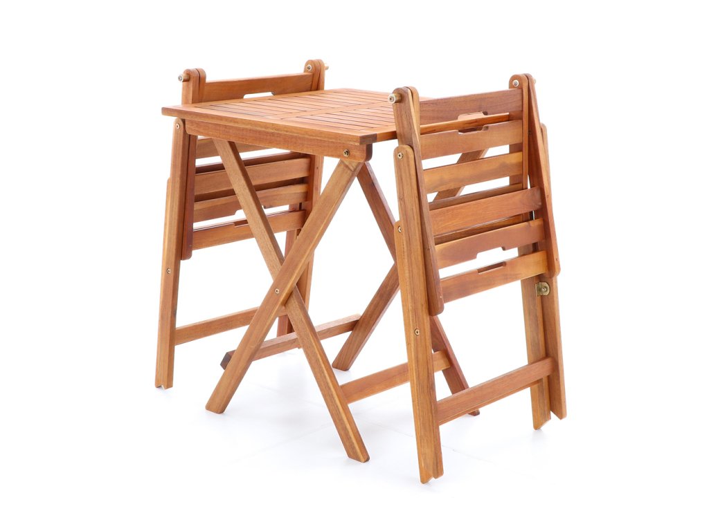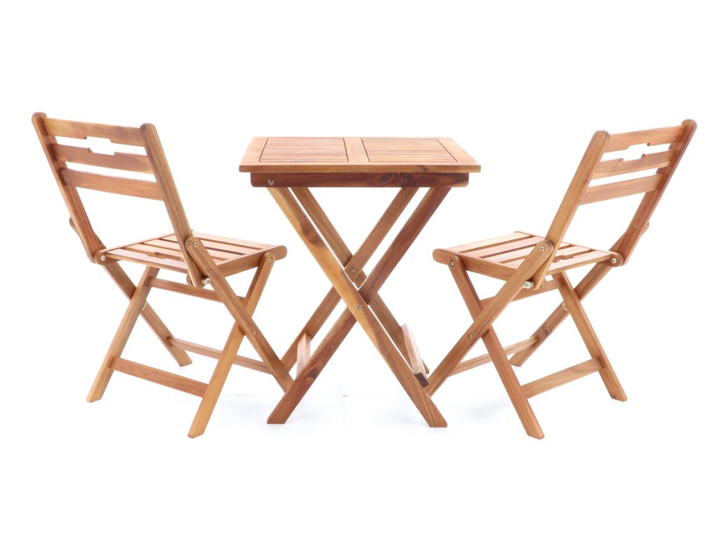 Luxusní balkonový set VeGAS Balcony SET z akáciového dřeva, 1x stůl + 2x skládací židle. Pro idilické chvíle na zahradě či balkoně.