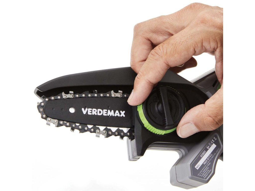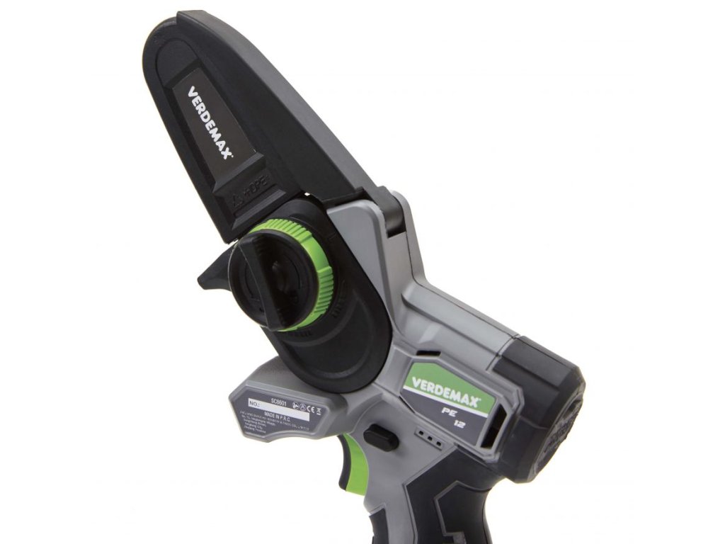 VERDEMAX PE12 Aku jednoruční řetězová pila je ergonomická výborně sedí do ruky, usnadní práci jak v koruně stromu při prořezávání, odřezávání, odvětvování a zkracování. Je to skvělý pomocník na úpravu stromů , keřů , vinic atd….
