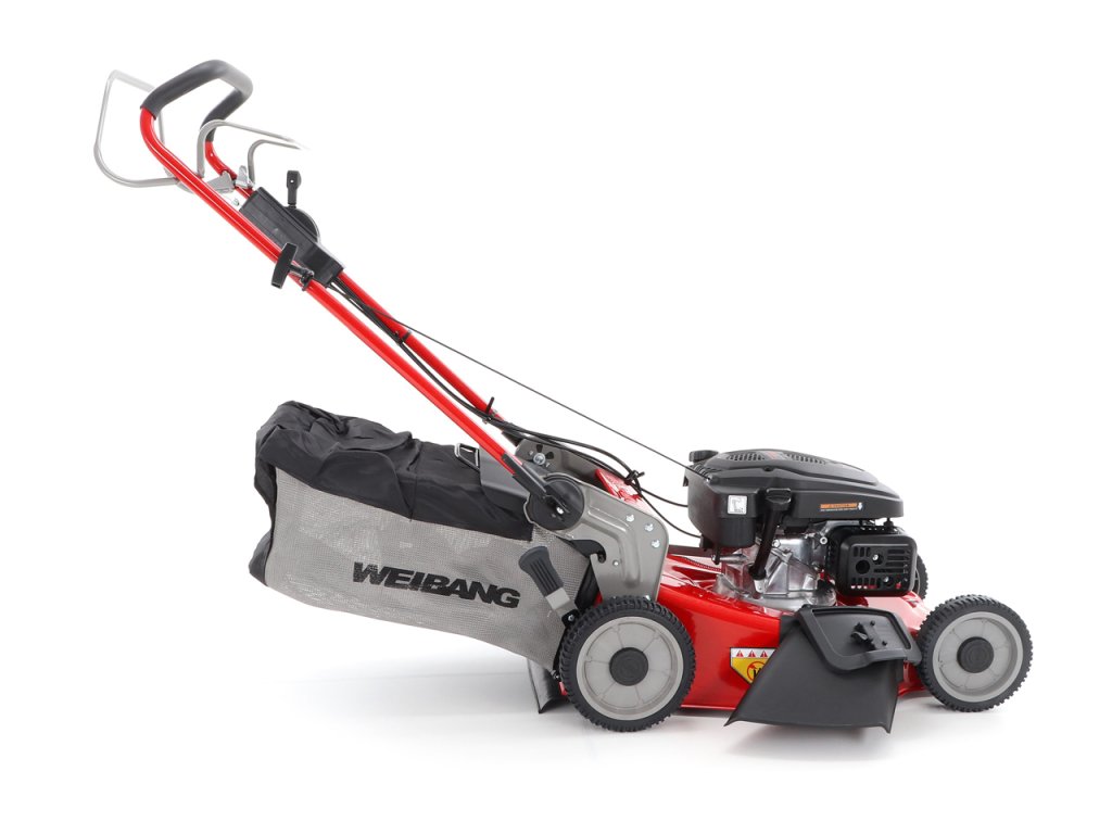 Travní benzinová sekačka WEIBANG WB 506 SC 6in1 s variabilním pojezdem Sekačka WEIBANG WB 506 SC 6in1 je určena na střední až středně velké travnaté plochy. Její neskutečná výbava, design a kvalitní zpracování z ní dělají doslova perlu v této střední třídě travních sekaček s pojezdem. Sekačka WEIBANG WB 506 SC 6in1 vyniká speciálním pevným a masivním ocelovým šasim. Velkou předností této sekačky je variabilnost použití funkcí 6 in 1, což znamená, že sekačka WEIBANG WB 506 SC 6in1 umí sbírat posečenou trávu do koše, mulčuje, vyhazuje trávu bokem, zadním deflektorem a má variabilní pojezd daný motorem. Výhoda silného motoru s rozvodem OHV o výkonu 6 HP a nože s velkými lopatami (BIG BLADE) Vám perfektně sebere i přerostlou mokrou trávu. Pogumovaná sendvičová kola jsou uložena v oboustranných kuličkových ložiscích, centrální nastavení výšky sečení je u této značky samozřejmostí. Velkým nadstandardem u této sekačky je použita speciální třecí spojka na noži sekačky pod unášečem, která je schopna prokluzu nože při naražení do pevné překážky. Tato funkce může eliminovat škody na sekačce způsobené nárazem nože do překážky. Ergonomická rukojeť s ovládacími prvky otáček motoru a speciální povlak na obvodu sběracího koše, který stimuluje proud vzduchu, aby se neprášilo na obsluhu. Dále je tato sekačka vybavena pevnými zadními koly a sklopnou rukojetí pro snadné uskladnění a přepravu. Masivní žačí nůž s mohutnými vyhazovacími "lopatami - tzv. BIG BLADE" a velký koš spolu se zajímavou cenou dělají z této sekačky WEIBANG WB 506 SC 6in1 kvalitního pomocníka s bojem proti zelenému živlu. Dalším velkým unikátem je motor, který patří mezi to nejlepší co WEIBANG v dané třídě nabízí. Jedná se o profeisonální silný motor rozvodu OHV o výkonu 6 HP a vysokým kroutícím momentem 9,5 Nm - 166 ccm. Velkou výhodou tohoto motoru je automatický sytič, tzn. že sekačku nastartujete kdyko-li a kdoko-li bez nutnosti cokoli na sekačce či motoru nastavovat. Samostané velice snadné ruční nastartování zvládne bez problému každy i žena či starší člověk. Další profesionální prvek, kterým sekačka disponuje je masivní kovová převodovka s garantovanou dlouhou životností. Novinkou sekačky je funkce tzv. "CHYTRÉ ŘEŠENÍ", sekačku lze pro ekonomické uskladnění, snadné čištění, servisování otočit a postavit na zadní speciální patky šasí, tímto se snadno dostanete na spodní část žacího ústrojí, uložení náprav a převodovku. Ergonomicky upravená madla se dají variabilně nastavit do jakékoli výšky za pomocí profesionálních masivních celokovových rychloupínáků. Novinkou letošní sezóny je speciální komaxitový nástřik s leštěnou smooth hardness úpravou (3 vrstvy nástřiku), který výrazně umocňuje luxusní vzhled a eleganci. Novinkou letošní sezóny je speciální komaxitový nástřik s leštěnou smooth hardness úpravou (3 vrstvy nástřiku), který výrazně umocňuje luxusní vzhled a eleganci.Rotace 3D - WEIBANG WB 506 SC 6in1 RED LINE + 2 x Olej SAE 30: