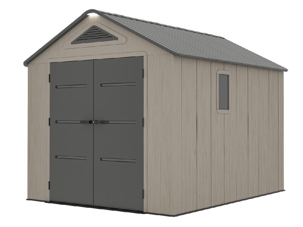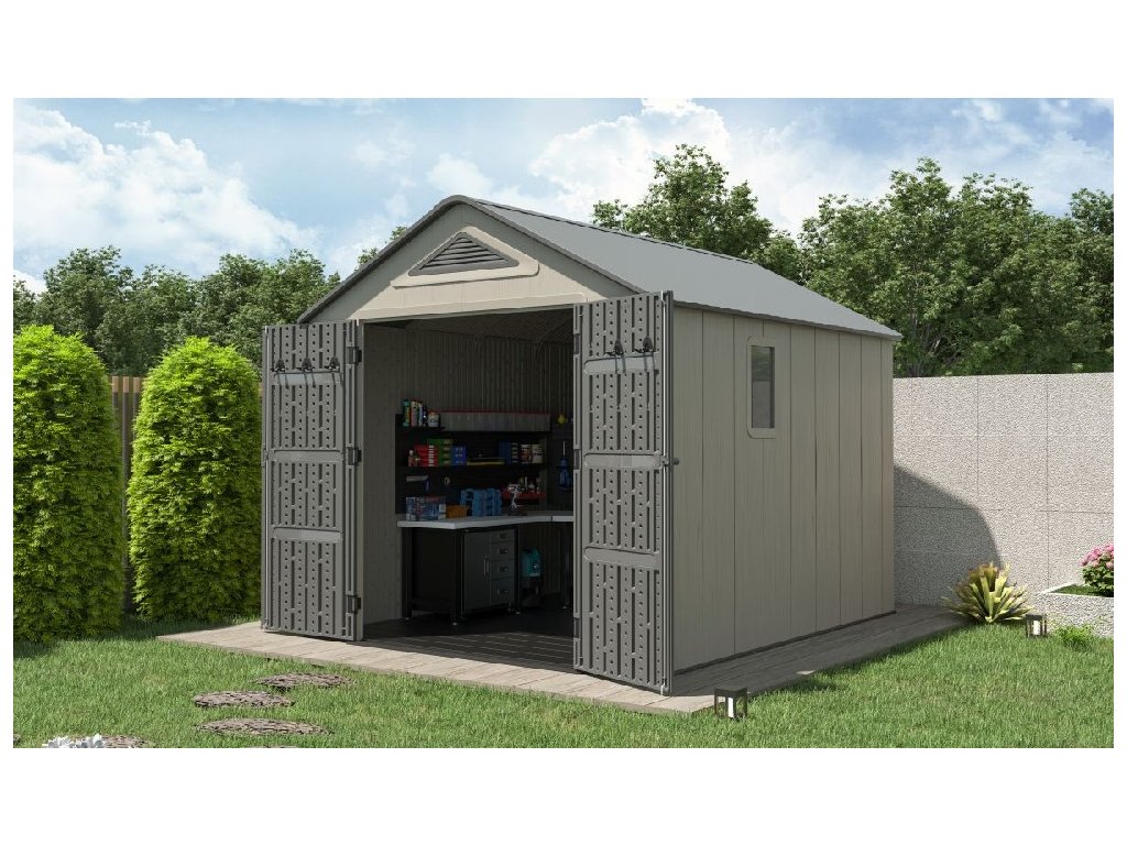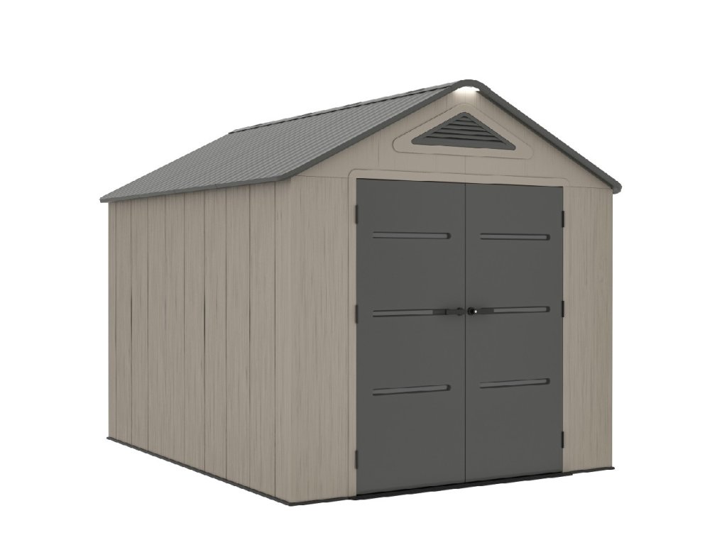 Pouze rozbaleno, 100% stav, originální obal.Zahradní domek moderní, odolný a bezúdržbový Moderní zahradní domek představuje ideální řešení pro bezpečné a přehledné uložení zahradního nářadí, techniky i sezónního vybavení. Je vyroben z kvalitních dvouvrstvých HDPE panelů, které jsou zcela bezúdržbové a mimořádně odolné vůči povětrnostním vlivům. Tloušťka stěn 22 mm a zesílená střecha o tloušťce 36 mm zaručují dlouhou životnost a stabilitu. Robustní konstrukci podporuje ocelový rám s práškovým lakováním (0,8-1,8 mm), který spolehlivě chrání proti korozi. Díky světlíku v hřebeni střechy a bočnímu polykarbonátovému oknu je interiér domku příjemně prosvětlen po celý den. Pohodlný přístup zajišťují dvoje široké dvoukřídlé dveře s praktickým dvojitým madlovým zámkem, které usnadňují manipulaci i s objemnější technikou, jako jsou sekačky či zahradní vozíky. Součástí domku je také pevná plastová podlaha, která chrání před vlhkostí, blátem a umožňuje bezpečné uložení i těžších předmětů. O optimální klima uvnitř se stará ventilační systém na dvou stranách, který zajišťuje účinnou cirkulaci vzduchu. Moderní sedlová (apex) střecha přispívá k rychlému odvodu dešťové vody a zároveň zvyšuje nosnost celé konstrukce. V základní výbavě nechybí dvě praktické police a pět plastových háčků, díky nimž budete mít veškeré nářadí vždy přehledně uspořádané. Pro ještě větší komfort je k dispozici volitelné LED světlo s pohybovým PIR senzorem, které zajistí automatické osvětlení při vstupu do domku.